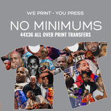 Transform your designs into vibrant, all-over prints with our 44x36 inch sublimation gang sheets. Perfect for custom apparel businesses, these sheets offer full creativity without order minimums.